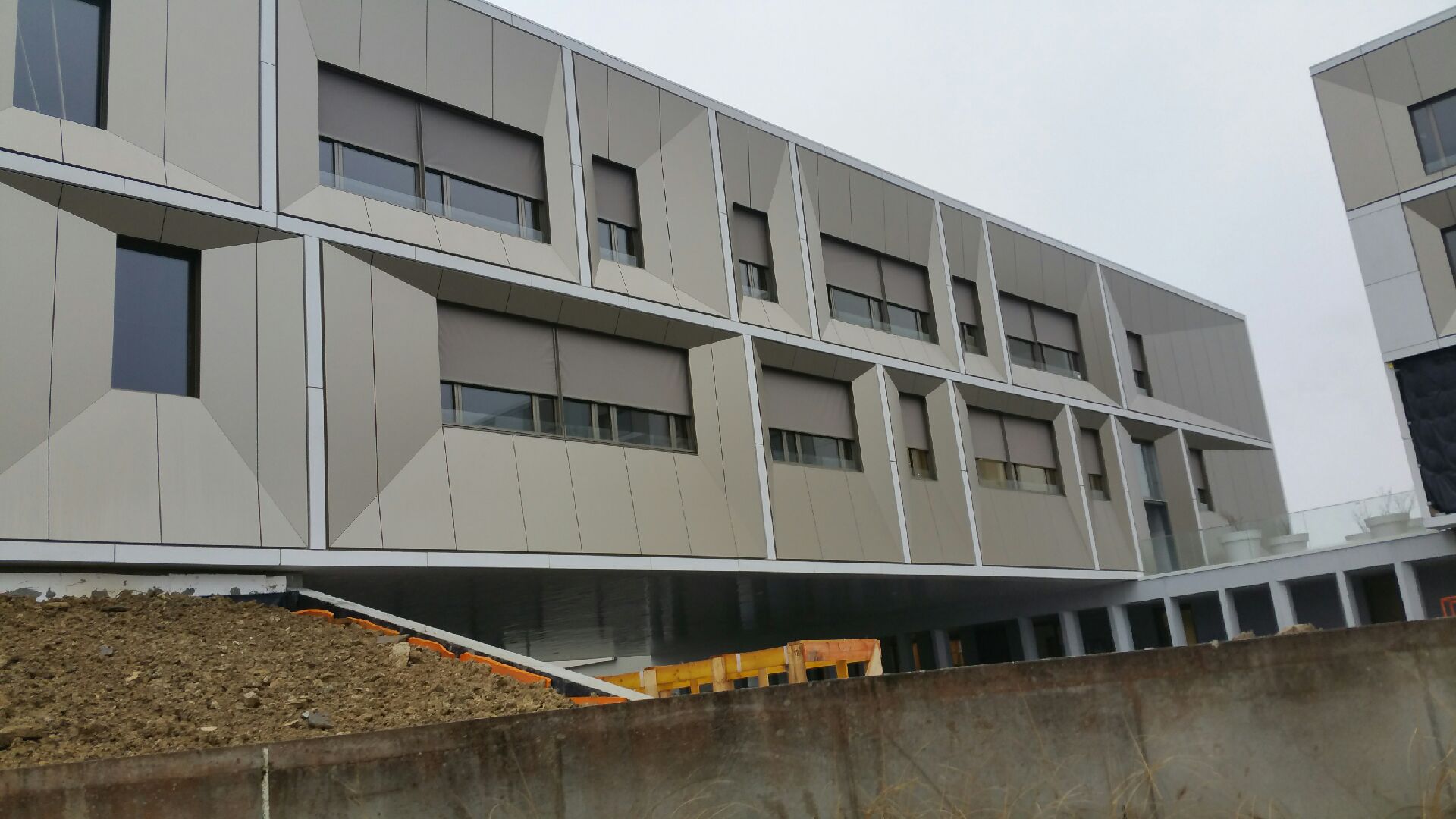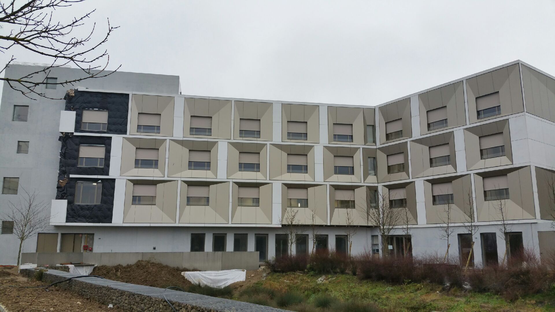 Deux types de toile retenus (plus de 500 m²) dans la gamme Serge FERRARI : toile Soltis B92 pour l’occultation de la partie Internat et toile Soltis 88 (pare-soleil) pour la partie lycée.